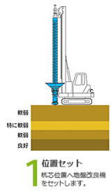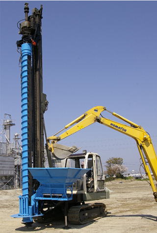 専用機で掘削・撹拌しながら柱状の改良体をつくる最も一般的な地盤改良工法です。