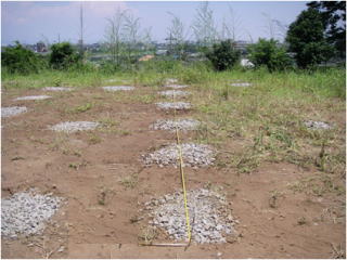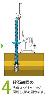 天然の砕石を使用した地盤補強工法で、地盤に柱状型の砕石杭を造り対象物を支持します。
